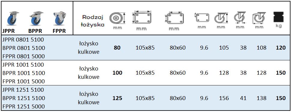 Koło NIERDZEWNE PERFORMA z mocowaniem na płytkę JXPR 0801 5100