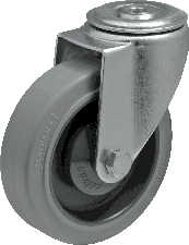 Szare koło tworzywowe z bieżnikiem z szarej gumy – bieżnik Performa PR, z pojedynczym podwójnie uszczelnionym łożyskiem kulkowym precyzyjnym.